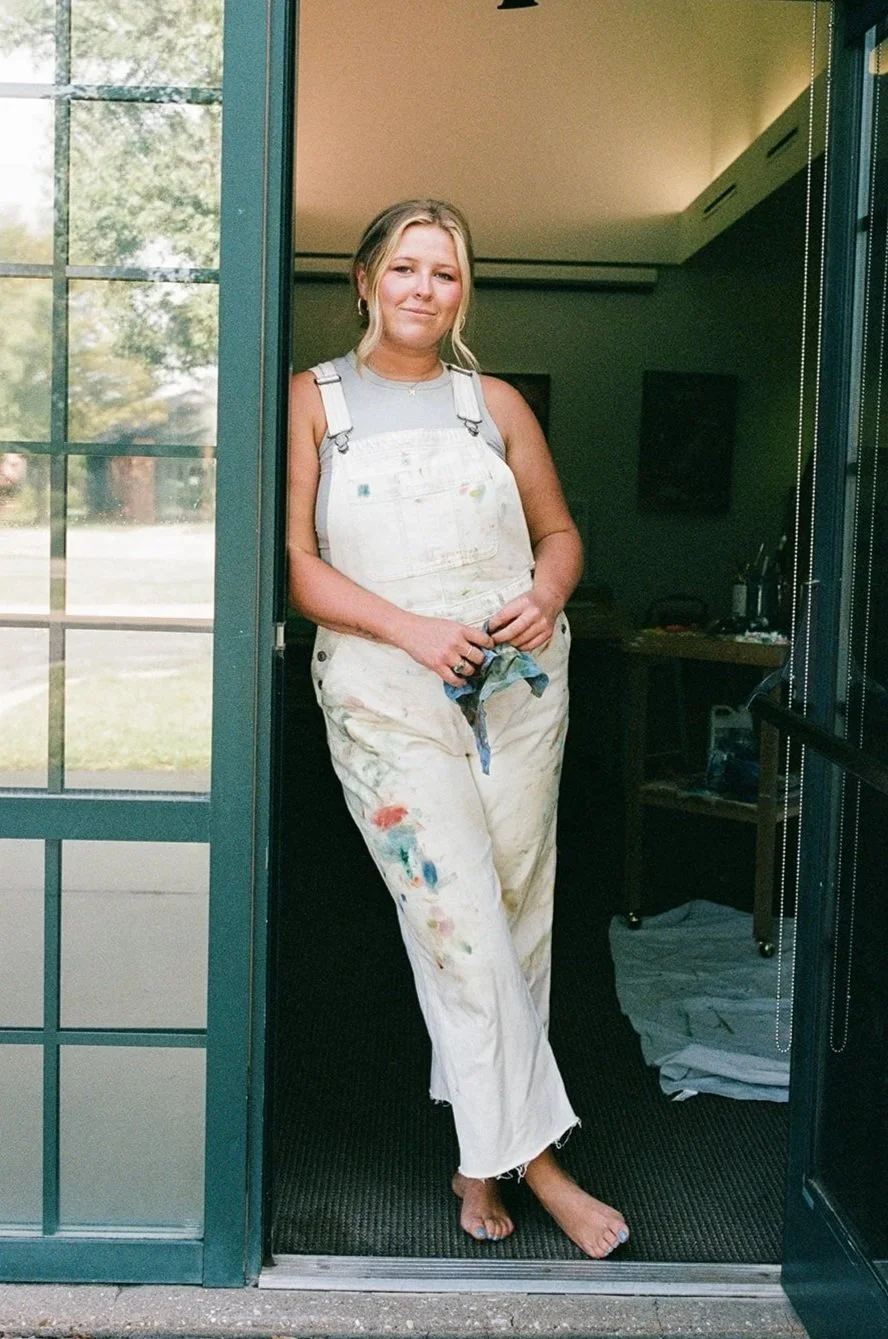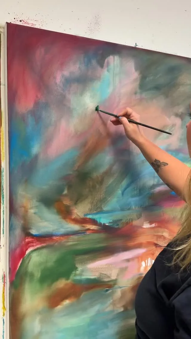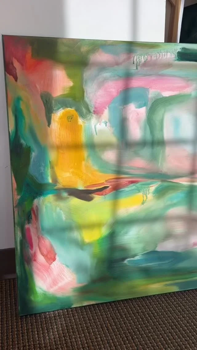 Mary McCoy is an abstract painter who creates vibrant and dream-like pieces. Her work blurs the boundaries between reality and imagination through her intuitive artistic process. Rather than following traditional oil painting techniques, she works with raw, ever-evolving composition and palette choices. Her process becomes a dialogue between artist and materials. By blending and stacking thin, transparent layers of paint, she creates dreamy forms that emerge and recede like half-remembered visions.